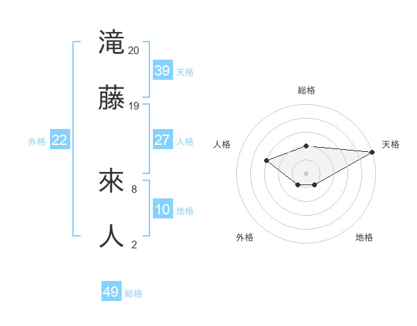 滝藤 來人さんの総格は49画の2点!