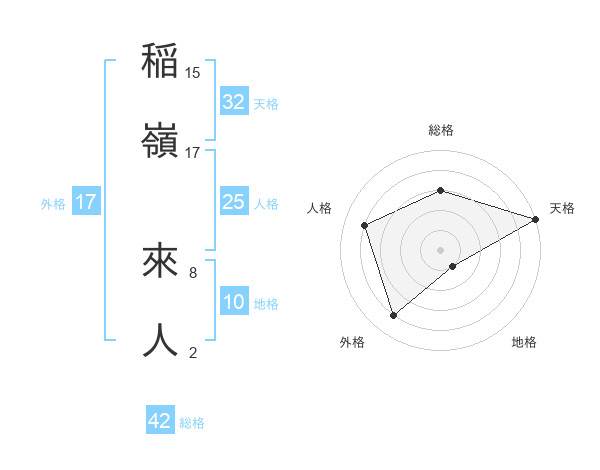 稲嶺 來人さんの外格は17画の4点!