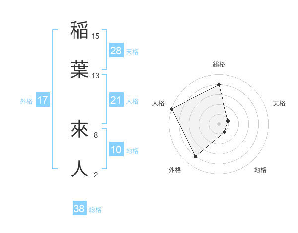 稲葉 來人さんを姓名の画数から五運を鑑定