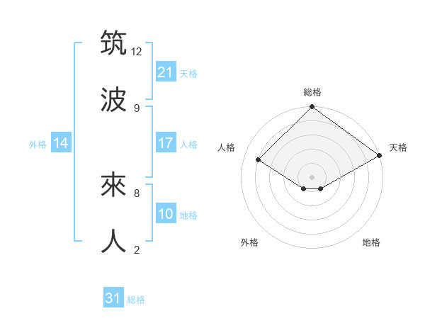 筑波 來人さんの総格は31画の5点!