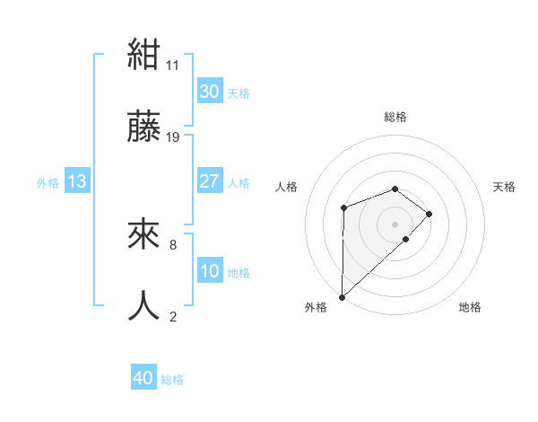 紺藤 來人さんを姓名の画数から五運を鑑定