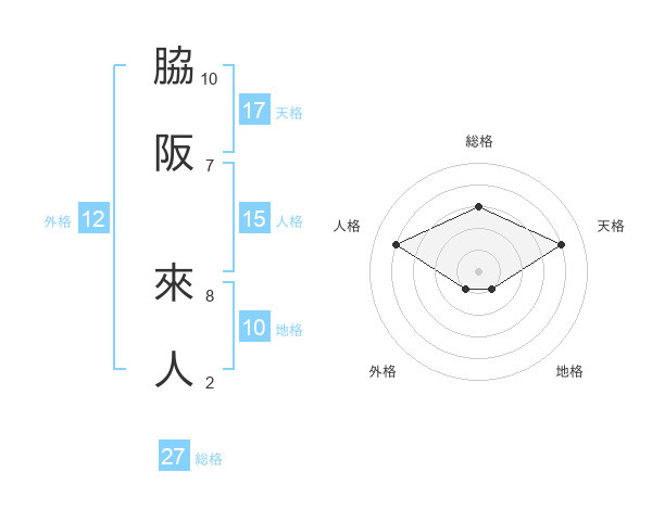 脇阪 來人さんを姓名の画数から五運を鑑定