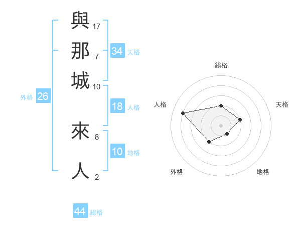 與那城 來人さんの総格は44画の2点!
