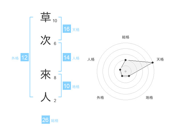 家系が持つ宿命的な運勢を表します。祖先から受け継いだ苗字ですので自分の力が及びません。家柄を象徴します。