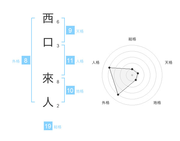 西口 來人さんの外格は8画の4点!