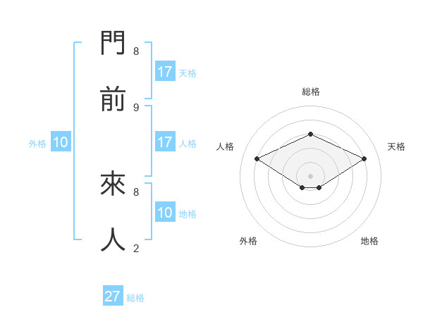 家系が持つ宿命的な運勢を表します。祖先から受け継いだ苗字ですので自分の力が及びません。家柄を象徴します。