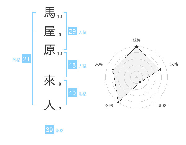 馬屋原 來人さんの総格は39画の5点!