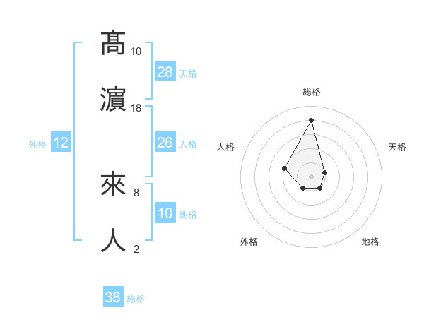 髙濵 來人さんの総格は38画の4点!