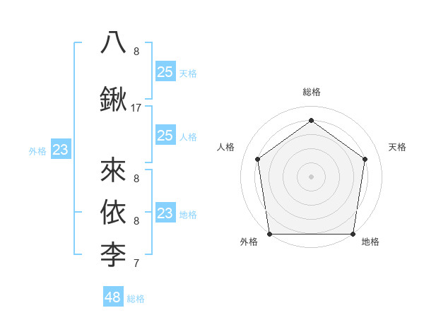八鍬 來依李さんを姓名の画数から五運を鑑定