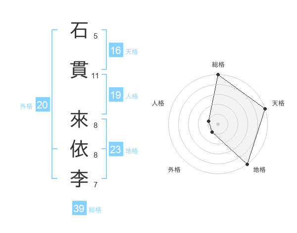 石貫 來依李さんを姓名の画数から五運を鑑定