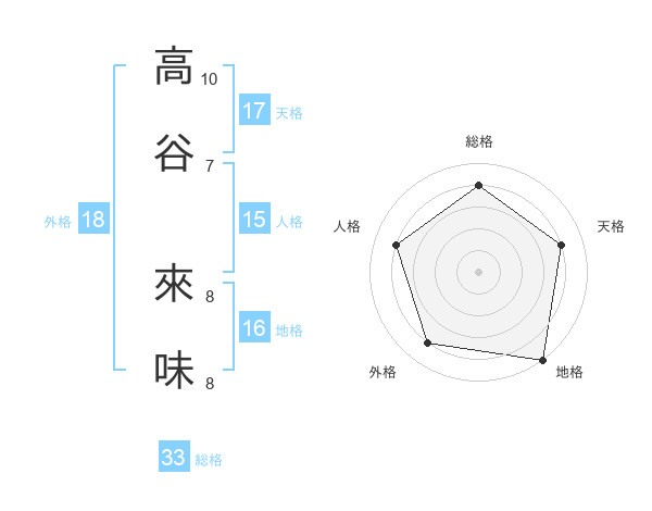 本サイトの鑑定結果の正当性は保証しません。鑑定結果は参考程度にお読みください。実際の名づけにご利用される場合は、姓名判断についてご自身でよくお調べください。