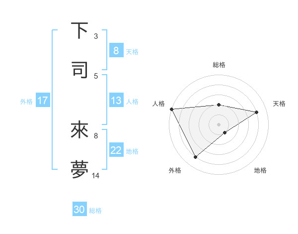 下司 來夢さんの外格は17画の4点!