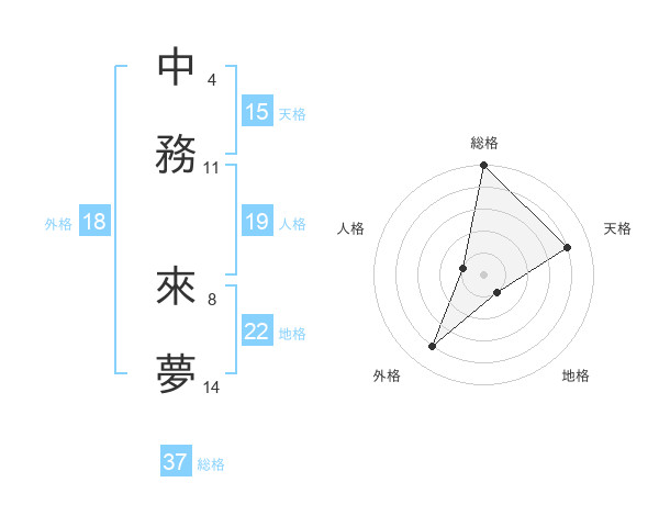 中務 來夢さんの総格は37画の5点!