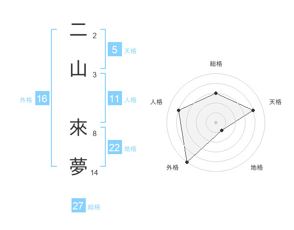 二山 來夢さんの外格は16画の5点!