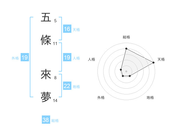 五條 來夢さんの外格は19画の1点!