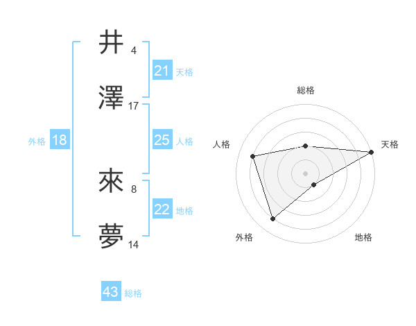 井澤 來夢さんの天格は21画の5点!