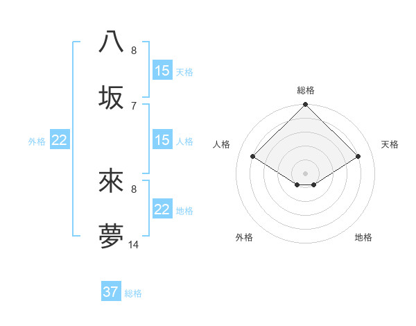 八坂 來夢さんの総格は37画の5点!