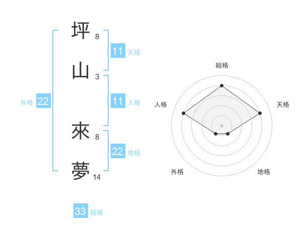 坪山 來夢さんの総格は33画の4点!