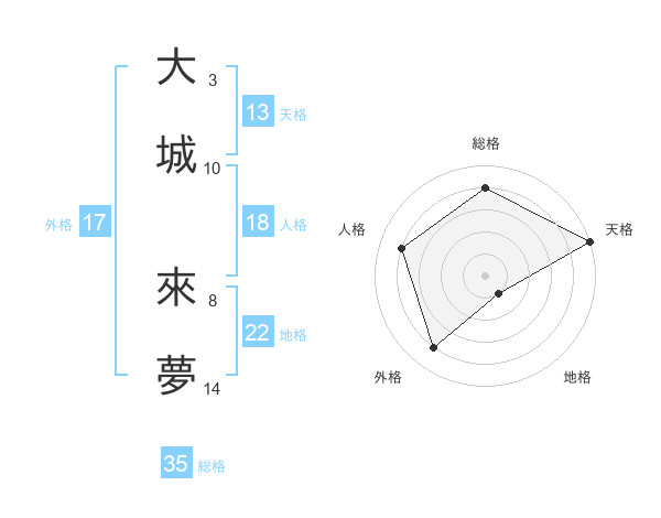 大城 來夢さんの外格は17画の4点!