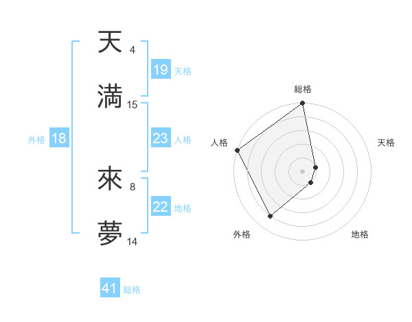 天満 來夢さんの総格は41画の5点!