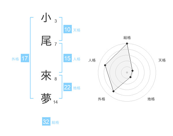 小尾 來夢さんを姓名の画数から五運を鑑定