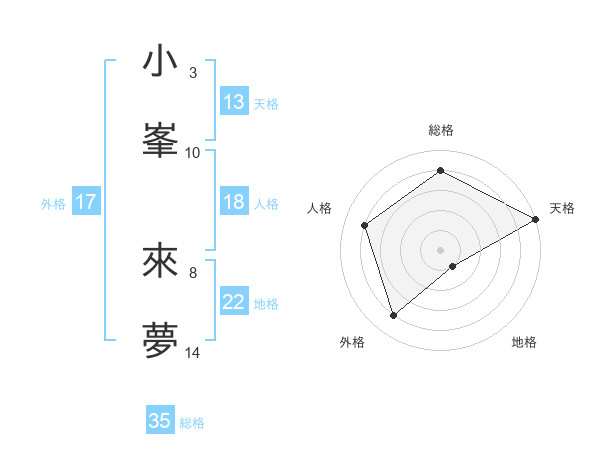 小峯 來夢さんの外格は17画の4点!