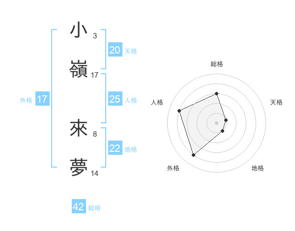 小嶺 來夢さんを姓名の画数から五運を鑑定