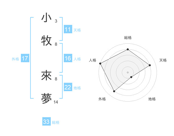 小牧 來夢さんを姓名の画数から五運を鑑定