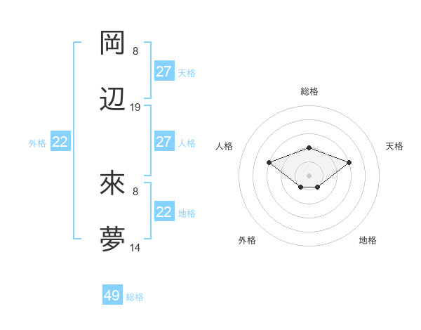 岡辺 來夢さんを姓名の画数から五運を鑑定