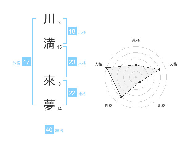 川満 來夢さんの天格は18画の4点!