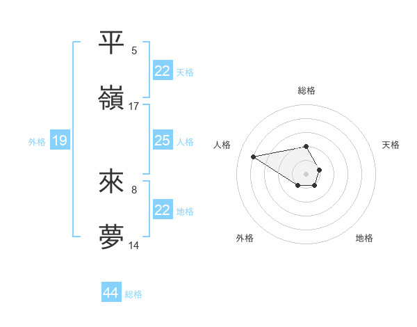 平嶺 來夢さんの地格は22画の1点!