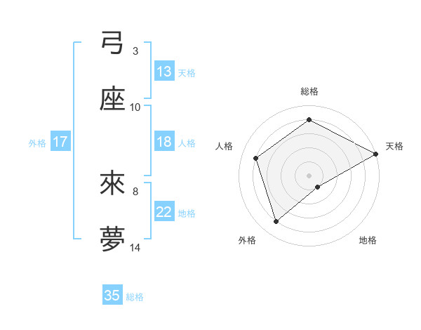 弓座 來夢さんを姓名の画数から五運を鑑定