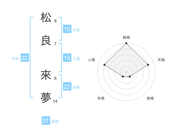 松良 來夢さんの総格は37画の5点!