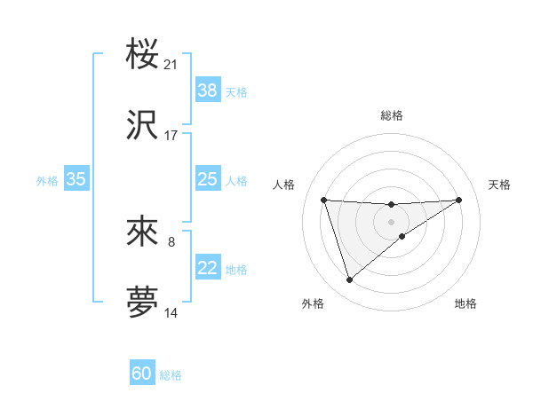 桜沢 來夢さんの天格は38画の4点!
