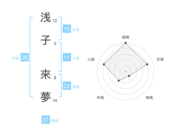 浅子 來夢さんを姓名の画数から五運を鑑定