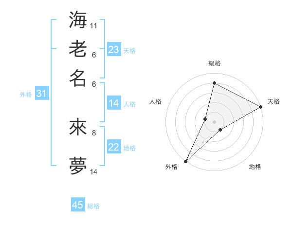 海老名 來夢さんの総格は45画の4点!