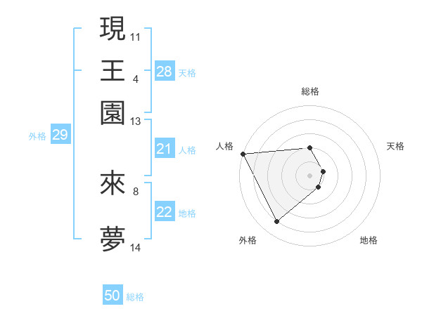 現王園 來夢さんを姓名の画数から五運を鑑定