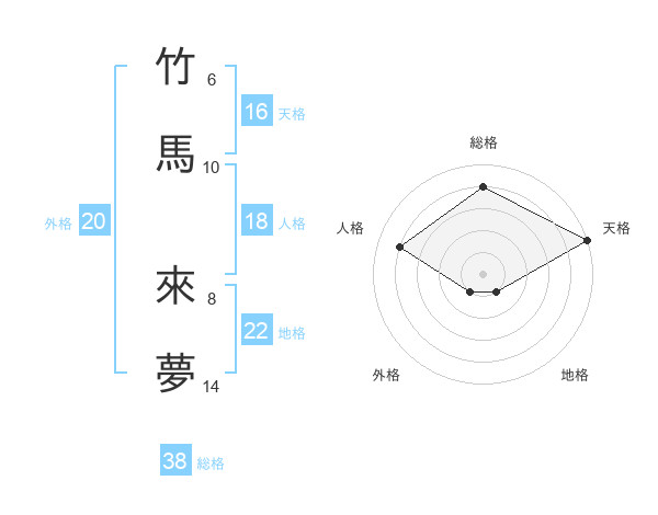 竹馬 來夢さんの外格は20画の1点!