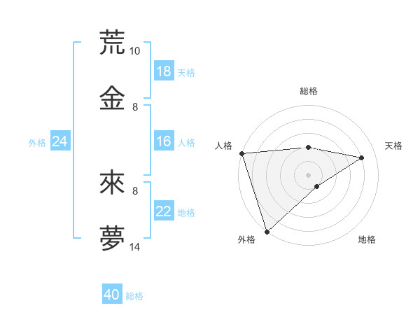 荒金 來夢さんを姓名の画数から五運を鑑定