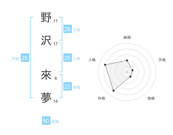 野沢 來夢さんを姓名の画数から五運を鑑定