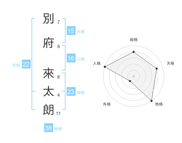 別府 來太朗さんの総格は38画の4点!