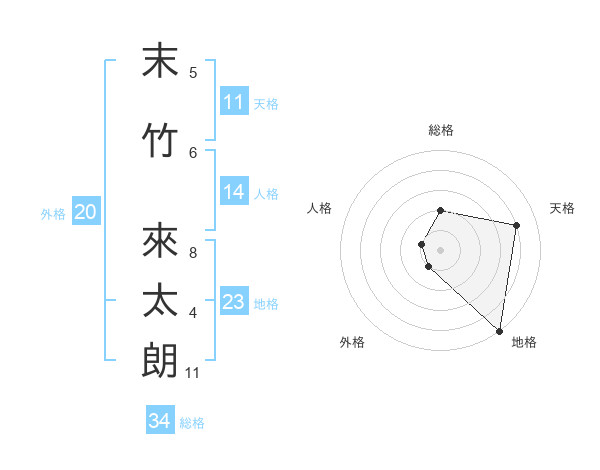 末竹 來太朗さんを姓名の画数から五運を鑑定
