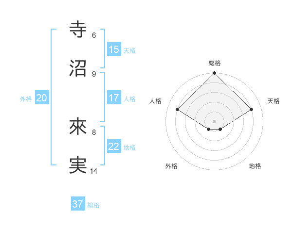 寺沼 來実さんの総格は37画の5点!