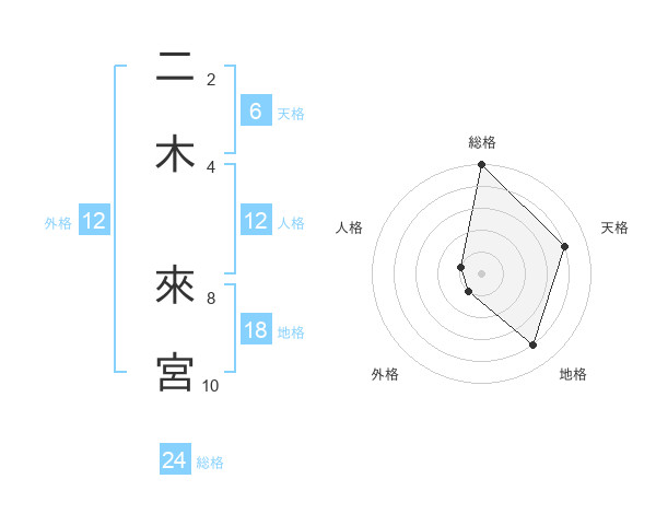 二木 來宮さんの総格は24画の5点!