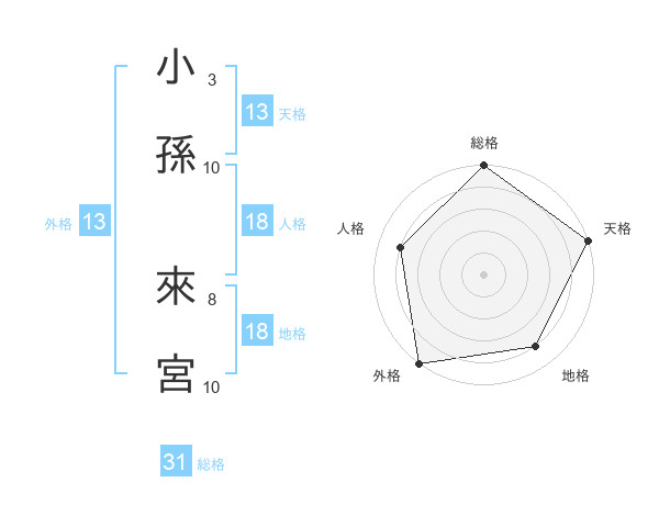 小孫 來宮さんの総格は31画の5点!
