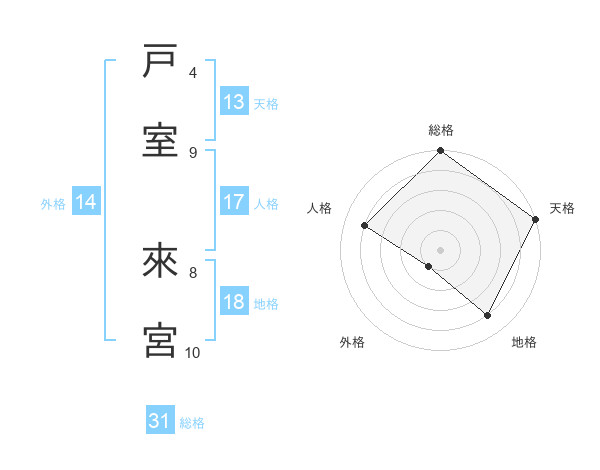 戸室 來宮さんを姓名の画数から五運を鑑定