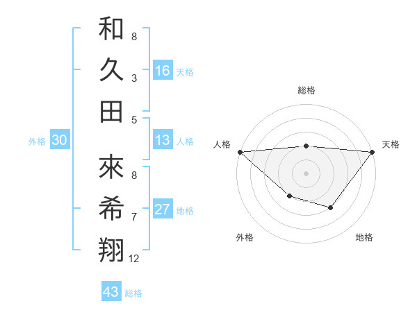 和久田 來希翔さんを姓名の画数から五運を鑑定