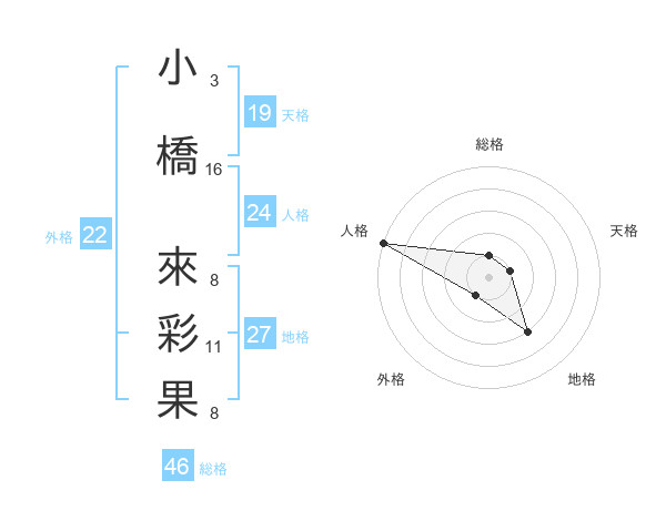 小橋 來彩果さんの外格は22画の1点!