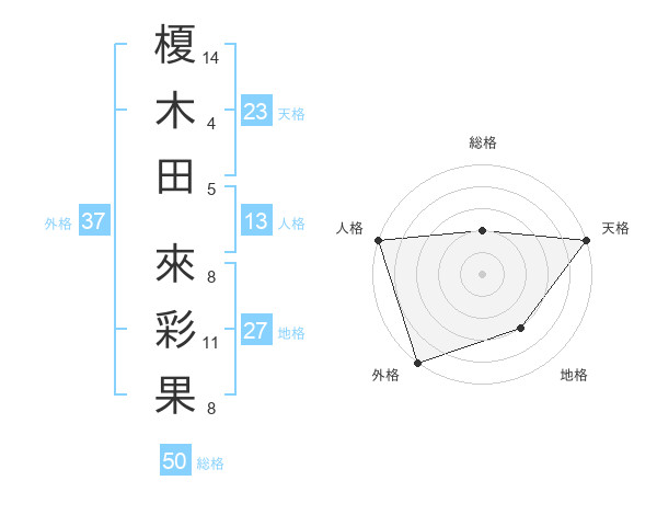 榎木田 來彩果さんの外格は37画の5点