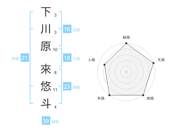 下川原 來悠斗さんを姓名の画数から五運を鑑定